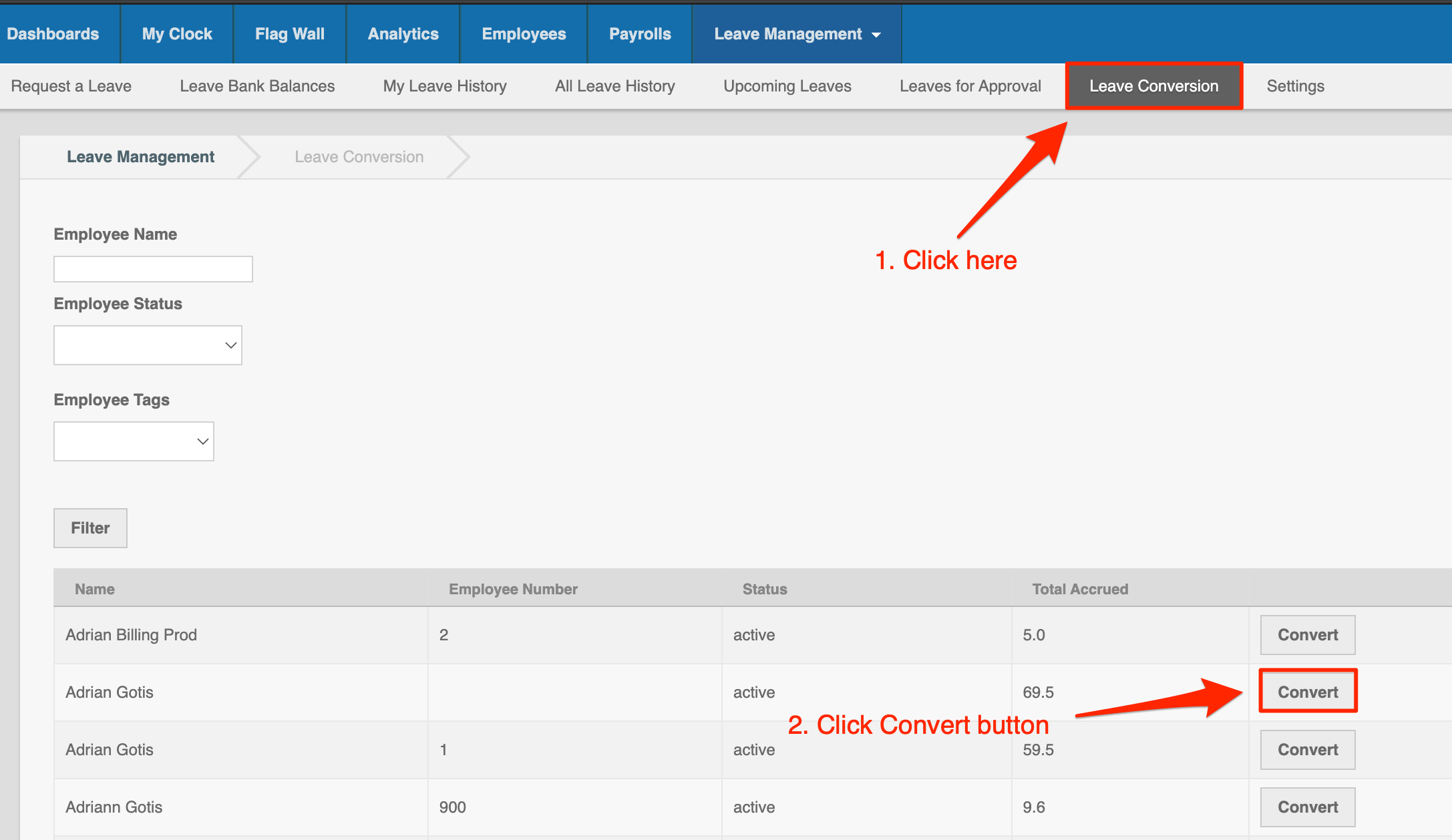 Follow the steps below to enable and process the conversion of expired leave credits: